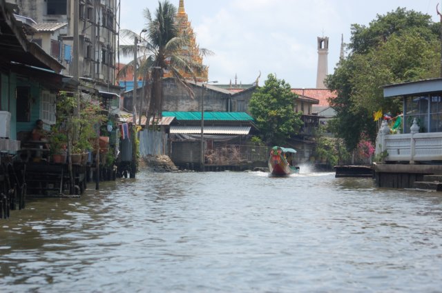 Ett annorlunda sätt att fotografera skyskrapor under sightseeingtur med båt på Bangkoks kanaler.